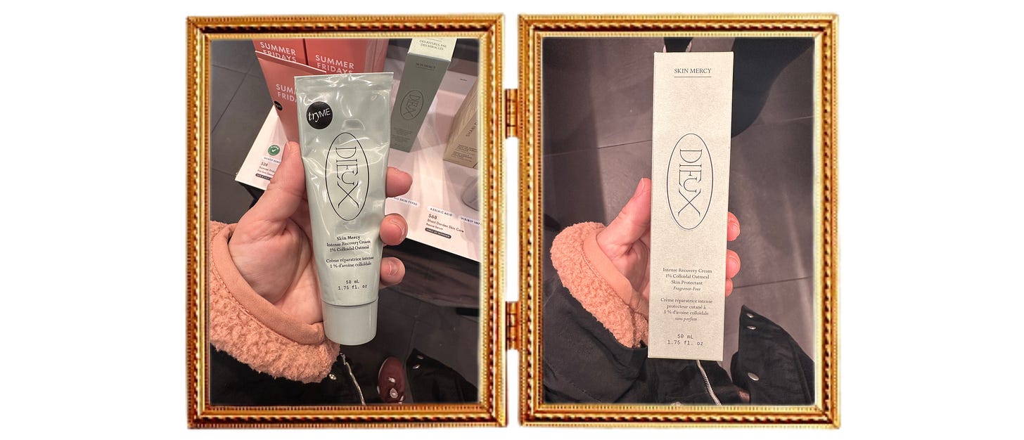 dieux just launched the perfect moisturizer for winter. enter: skin mercy intense recovery cream. this is dieux’s first over-the-counter formula, certified by the fda thanks to the inclusion of 1% collodial oatmeal and is an ideal option for those of us with sensitive skin and/or facial eczema 🙋🏻♀️ i scurried into sephora the day it launched and can attest to how beautiful this moisturizer feels; it emulsifies, melting right into skin without greasiness.