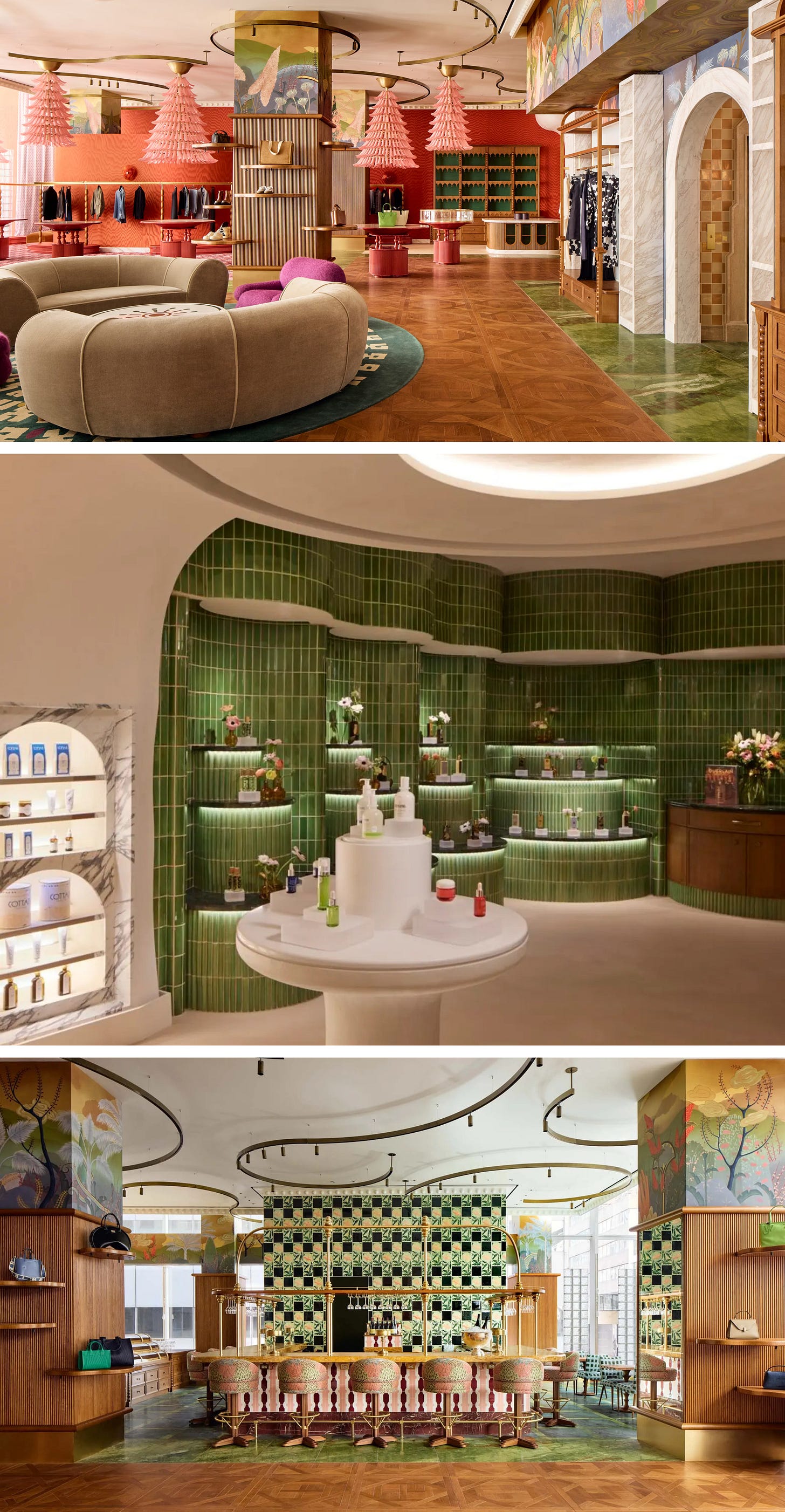there are multiple food/drink options, from an all day cafe to the champagne bar that doubles as a work of art. you can wander down the beauty corridor, discover emerging designers in the “playroom,” and even explore a literal forest of shoes (explore all of the rooms here), but do not expect bargains. warn your wallet in advance of your visit.
